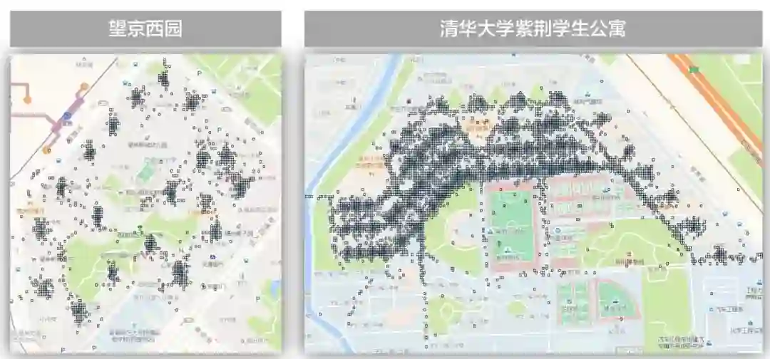 上图右,用户本来在xx区xx栋,但是只选了xx区这个比较粗的位置信息。现实中在一个小区里面,找到一个具体xx栋楼还是非常困难的,大家可以想想自己小区中,随便说一个楼号你知道它在哪个角落吗,更别说如果是大晚上在一个你不熟悉的小区了。造成这种原因,一方面可能是用户选择不精细,还有一种可能,就是地图上没有具体楼栋的POI信息。