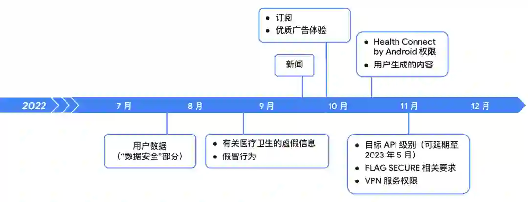 另请注意,所有应用都必须在 11 月之前满足 "目标 API 级别" 政策要求。如果开发者需要更多时间,可以申请延期至 2023 年 5 月。