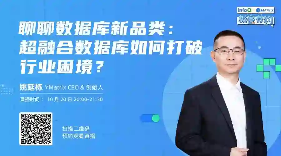超融合数据库到底应该怎么理解?新能源、智能制造等产业的数据库应⽤现状是什么?10 月 20 日 20:00-21:30,《InfoQ 极客有约》邀请到了 YMatrix CEO & 创始人 姚延栋,一起聊聊数据库的过去、现在与未来。