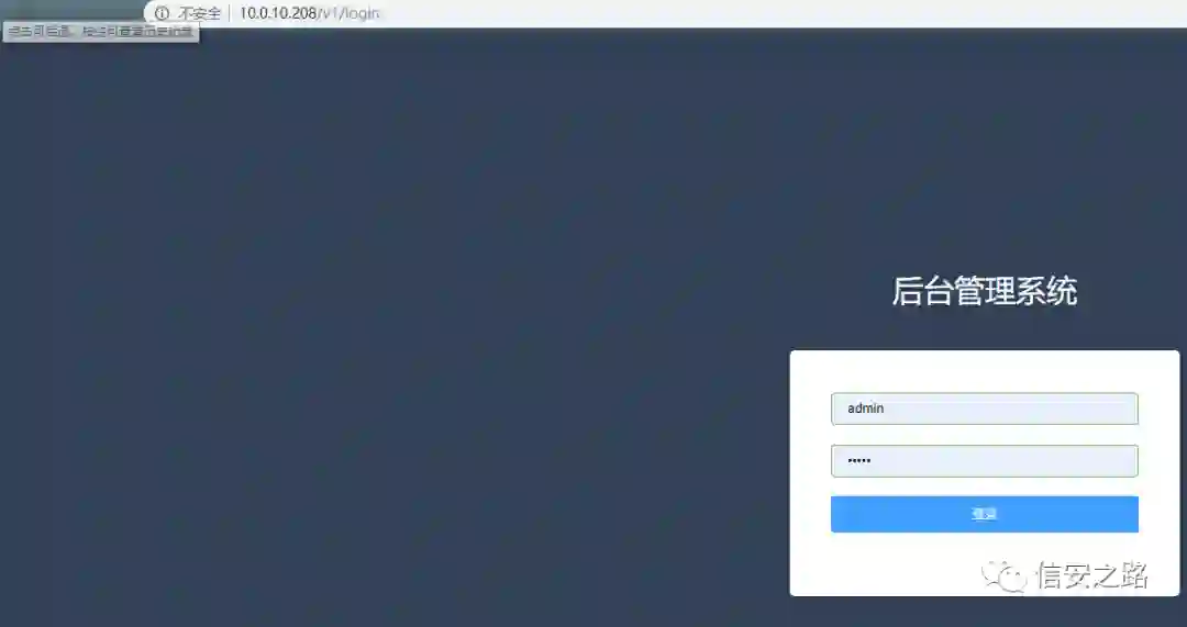 启动成功后,访问:http://10.0.10.208 ,登录管理后台:
