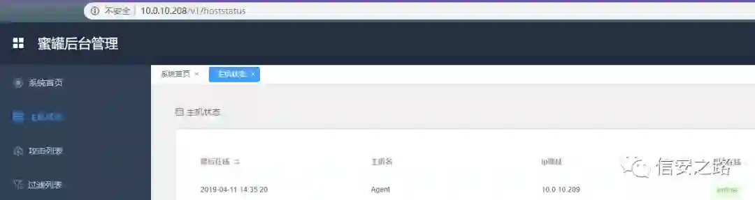 安装成功后,可在后台查看 agent 端主机在线状态。