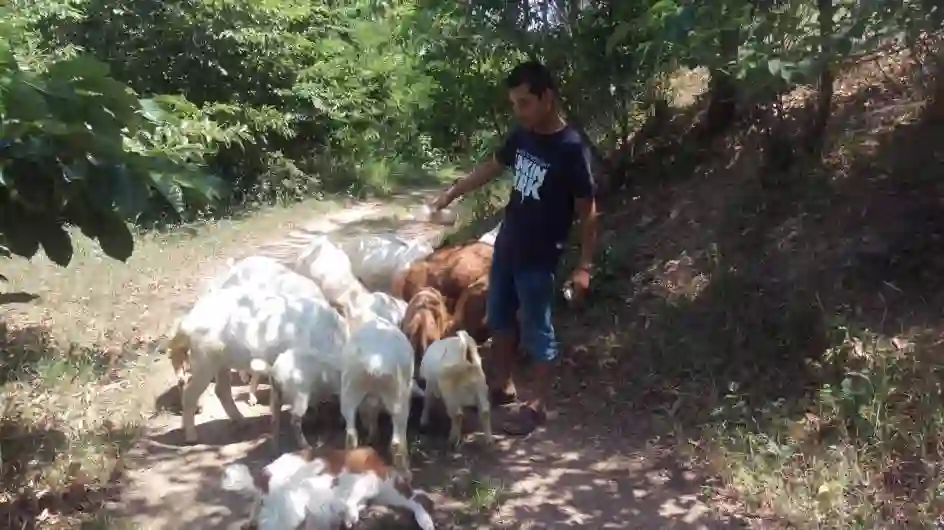 由于我下午返程,急着赶回去的车,把羊往回赶的时候,我们径直从野生丛林里穿过。我险些被荆棘划伤,沾了一裤子的刺,幸好穿的是长裤。