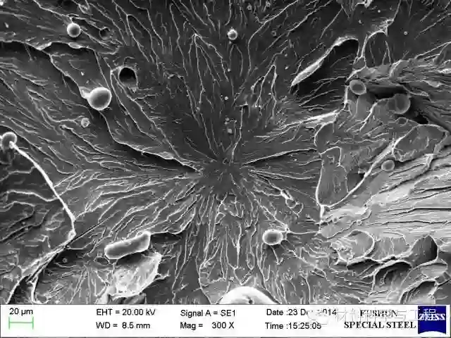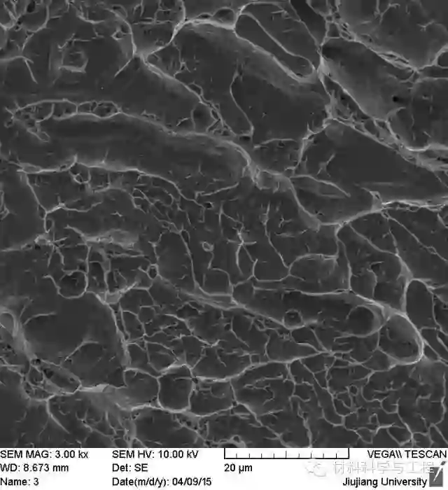 【63胡清华】材料:SEM图片由板厚为δ=6mm的06Cr19Ni10奥氏体不锈钢进行低温冲击试验制备。作品描述:SEM照片可看出试样断口主要呈韧窝状花样,并且是等轴韧窝,大小也分布的比较均匀,形状较为美观。