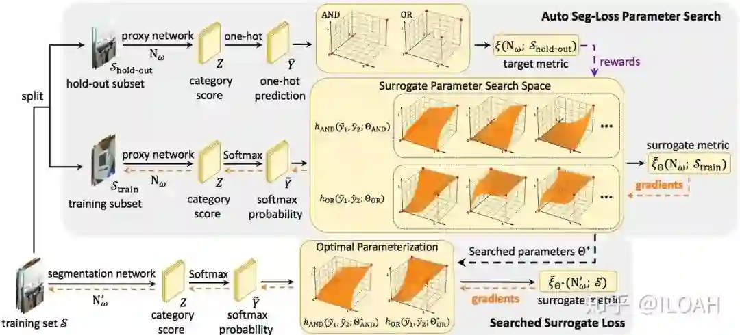 上有可微的定义,并使用softmax替代one-hot量化,从而得到一个可微版本的代理损失函数。接下来,我们使用强化学习算法(PPO2)对这个曲面的形状进行搜索,从而保证这个代理损失函数能够良好地指导训练。图1是我们算法的整体框架。