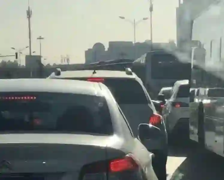 在等了几个漫长的红绿灯后,车子开始缓缓地前行,在这期间,不断有旁边不耐烦的司机按喇叭、插队、抢道、变道,整个路面渐渐烦躁了起来。