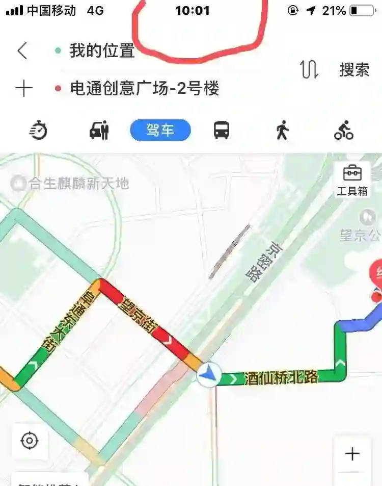 记录显示,到大山子路口仅有777米的距离,足足用了24分钟。(这只是在弱高峰时间段,同时老创也替赶在早高峰出行的同学心疼一秒钟)。