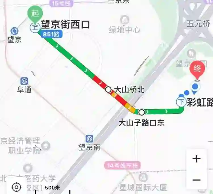 与此同时,老创的另一位同事,在九点多,乘公交从望京街西口公交站到彩虹路三站的路程,足足用了40分钟。她问我能不能体会,一个路口等三次红绿灯还过不去,站在拥挤的公交上,一脸懵逼又生无可恋的心情,我想,这应该是每个经过大山子路口人的心情写照吧……