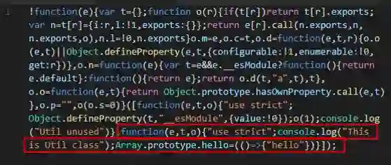 虽然 Util 类被引入之后没有进行任何使用,但是不能当做没引用过而直接删除。在混合后的代码中,可以看到 Util 类的本体 (export 的内容) 已经没有了,但是前后的 console.log 和对 Array.prototype 的扩展依然保留。这就是编译器为了确保代码执行效果不变而做的妥协,因为它不知道这两句代码到底是干嘛的,所以他默认认定所有代码 均有 副作用。