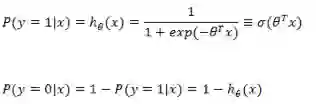 在之前的线性回归的基础上,如果要预测的 y 是一个离散值(简单起见,后面以来举例,多个离散值同样可以简化为若干个二值问题),我们增加一个叫 sigmoid 或者 logistic 的操作,把上面的连续值域映射到 [0, 1] ,我们认为他代表该 instance 对应这个 y 取值的概率: