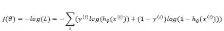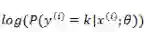 同样取负数把优化目标变为最小化,然后取 log ,得到代价函数: