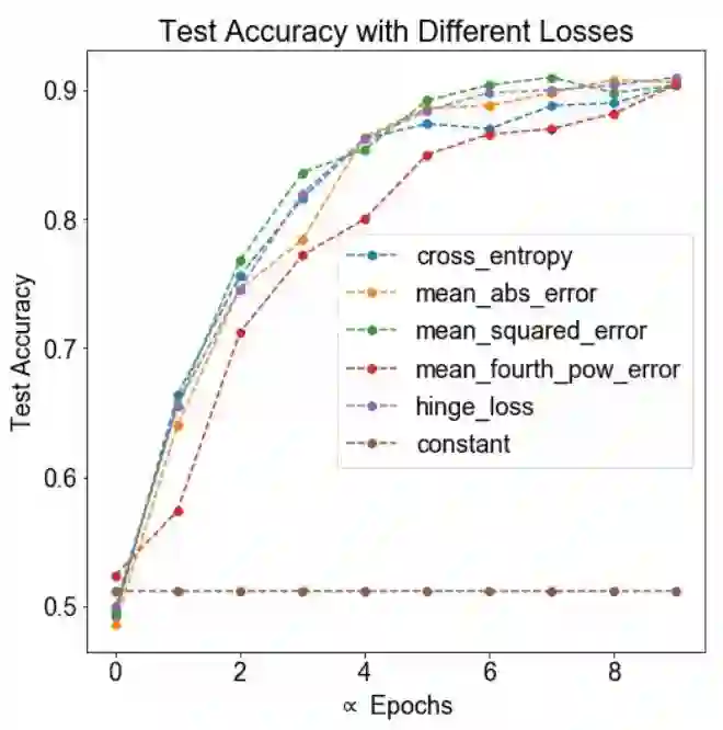 假设: 我们预计交叉熵损失函数作为分类任务的标准损失函数,表现最好,同时我们预计其他损失函数表现不佳。