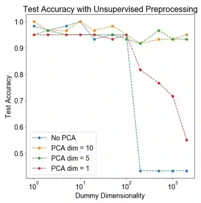 结论: 当维度非常大时,无监督的 PCA 步骤可以显著改善下游分类。