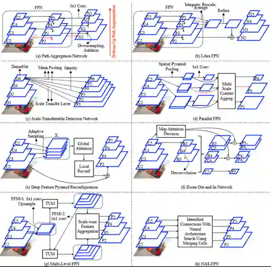 针对FPN结构中的特征层次,有几种方法可以解决FPN体系结构中的不平衡问题,从设计改进的自顶向下通道连接到完全新颖的体系结构。论文考虑了使用新的架构来缓解特征级不平衡问题的方法,根据它们作为基础的用途将它们分为两类:使用金字塔或backbone特征作为bias。