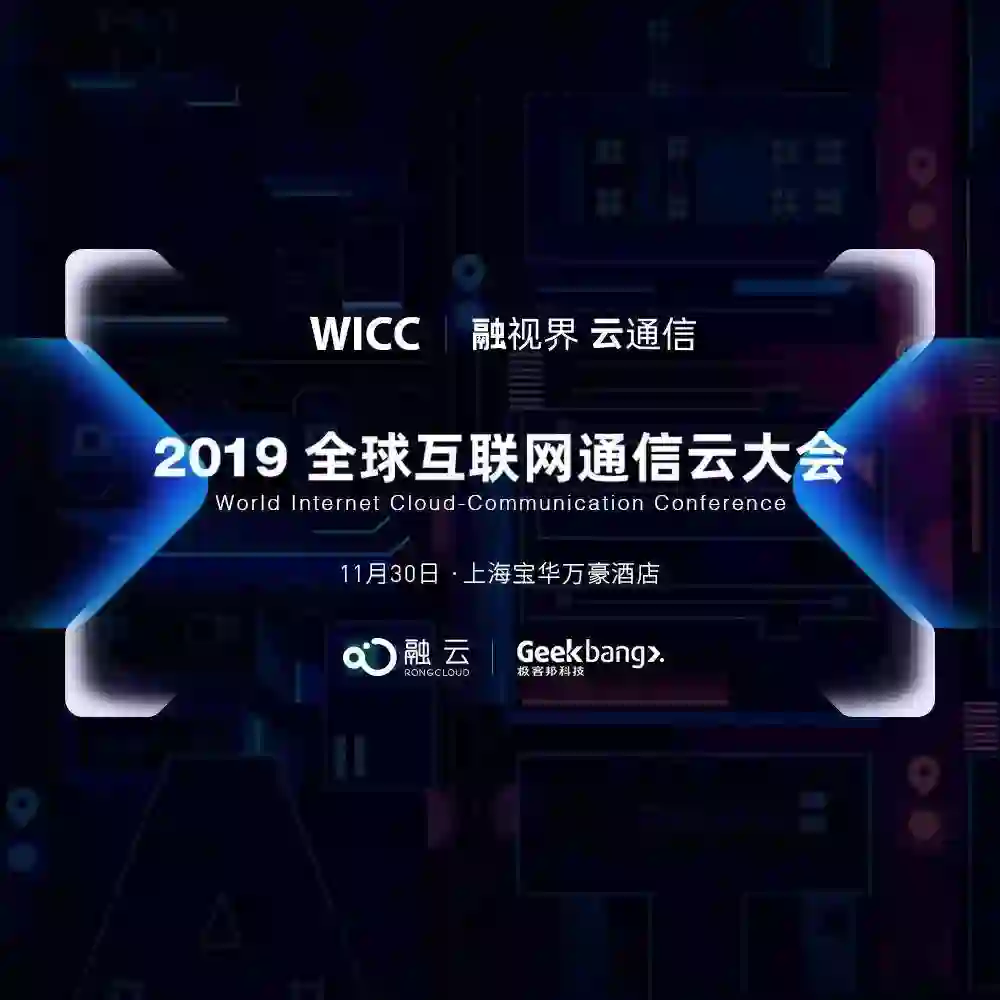 11 月 30 日上海,融云联合极客邦科技举办 2019 全球互联网通信云大会(WICC), 这是全球范围内首个围绕互联网通信云技术开展研讨的行业技术会议。面向全球开发者及行业技术领袖,围绕 5G、AI、云计算、新通信技术、架构演进与性能优化等前沿技术和热门话题,共同探讨 5G 时代背景下通信云市场格局的演变,探索通信云领域最新技术趋势,分享场景化解决方案和一线实战经验。