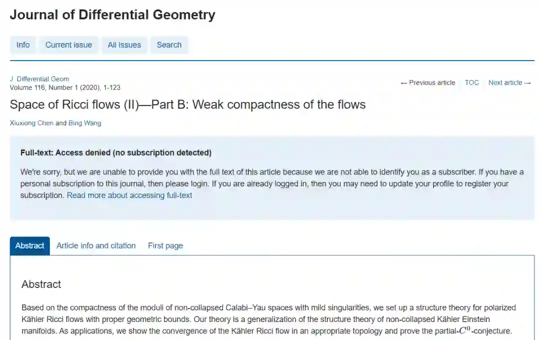 两位教授关于高维凯勒里奇流收敛性的论文发表在《微分几何学杂志(Journal of Differential Geometry)》上,该论文率先解决了哈密尔顿—田猜想和偏零阶估计猜想。《Journal of Differential Geometry》是微分几何领域最高级别的专业期刊,主编是国际数学领袖丘成桐教授。