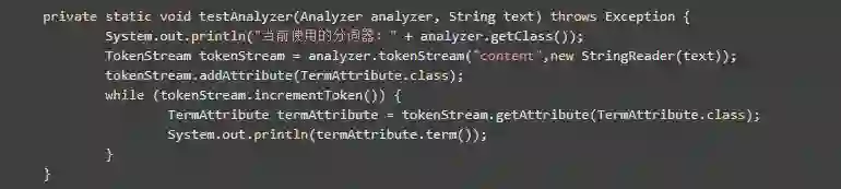 我们在选择分词算法的时候,我们会发现有非常非常多地分词器API,我们可以用以下代码来看看该分词器是怎么将数据分割的:
