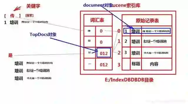 也就是说:Lucene存放数据的地方我们通常称之为索引库,索引库又分为两部分组成:原始记录和词汇表....