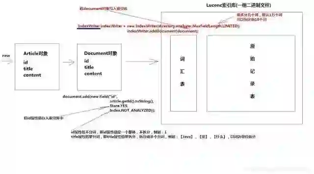 我们的Lucene程序就是大概这么一个思路:将JavaBean对象封装到Document对象中,然后通过IndexWriter把document写入到索引库中。当用户需要查询的时候,就使用IndexSearcher从索引库中读取数据,找到对应的Document对象,从而解析里边的内容,再封装到JavaBean对象中让我们使用。