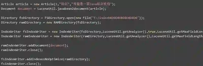 IndexWriter indexWriter = new IndexWriter(LuceneUtil.getDirectory(),LuceneUtil.getAnalyzer(),LuceneUtil.getMaxFieldLength());