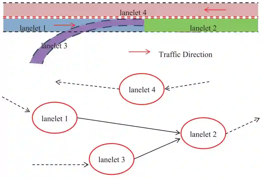 本文提出的 lanezone 概念与 Lanelet 有所不同,它注重保持可通行区间的横向水平,而不是只基于单车道构建可通行区间: