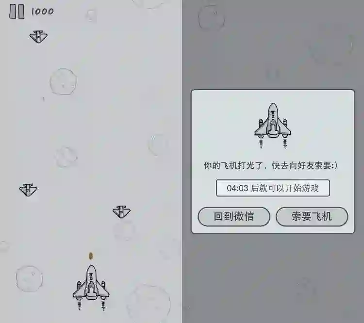 因为社交关系的引入,「打飞机、晒战绩」的方式很快风靡了朋友圈,从那之后,受到《经典飞机大战》的启发,H5 游戏开始在微信生态里流行。