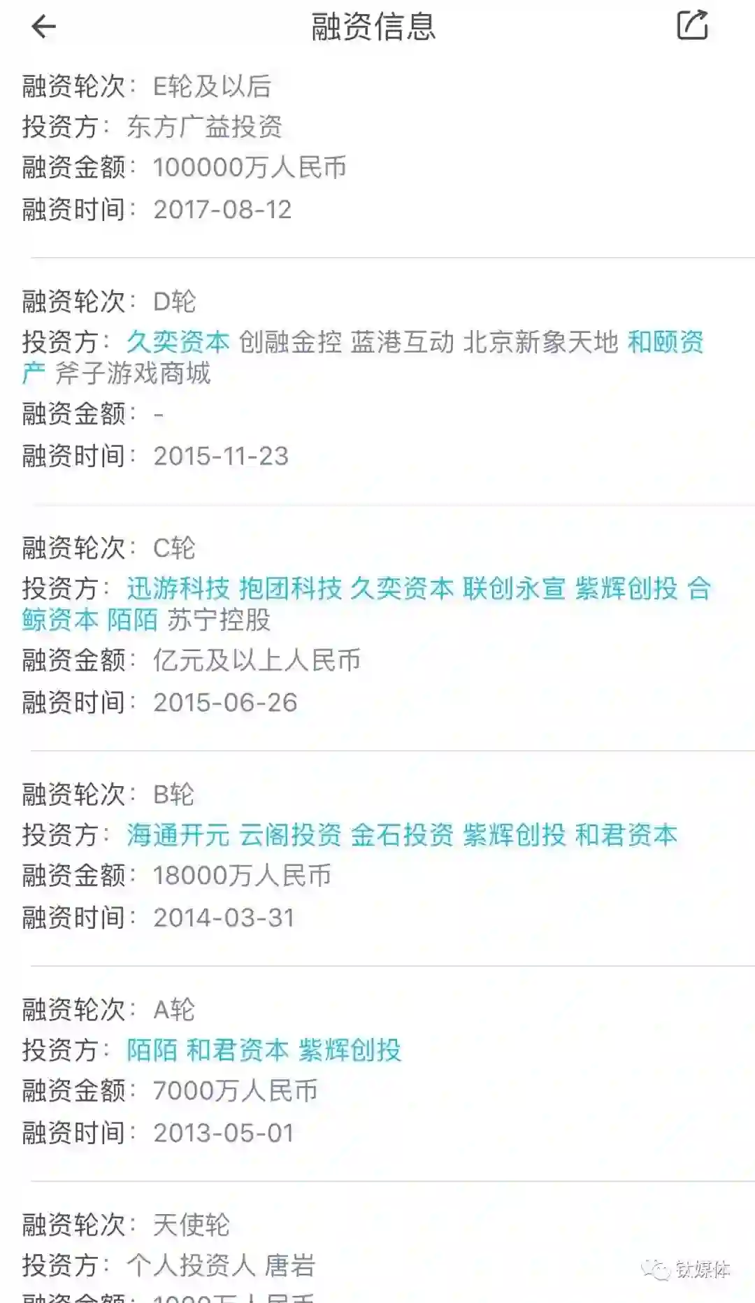 锤子历史上6次融资(数据来源:启信宝)