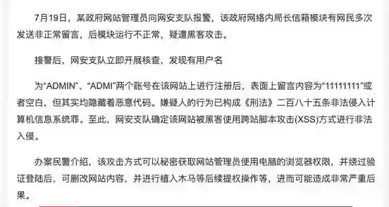 某匿名带头大哥在银川政府平台进行未授权漏洞测试时,插入恶意代码而导致网站后台模块瘫痪,之后网站管理员报案,这位匿名者因涉及违法犯罪行为抓走了。