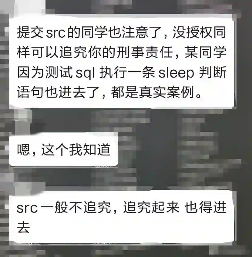 然后,在测试的时候,仍然需要注意点到为止,不要造成致命性危害,比如:业务宕机、拖库、删库等。一般来说,众测平台和厂商的服务协议里,会定义测试行为的边界和非主观恶意失误的免责条款。如果不小心出事了,一是放低姿态主动道歉,二是联系众测平台方看是否在免责条款范围内。这个时候,平台能否秉持公正有担当的态度,就非常重要了。记得之前Sobug联合某保险公司发布了一个保障白帽子的保险,白帽子如果无意手滑造成损失的,由保险公司来赔付厂商经济损失。