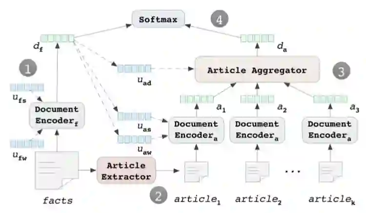 fact也通过Article Extractor抽取其中的匹配度较高的k个法条。