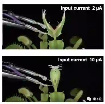 将人造神经元与捕蝇草连接,根据神经元的放电频率就能诱导其肺叶闭合: