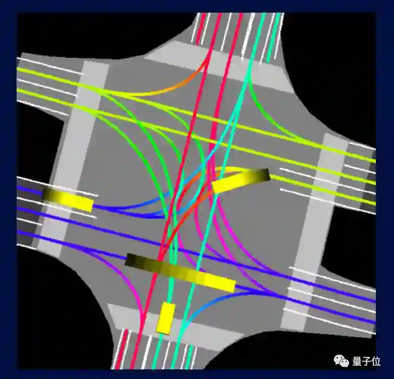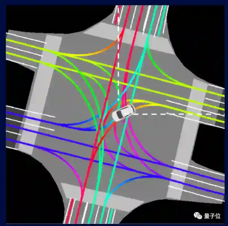 第二张加了用颜色表示的道路信息,不同颜色代表着不同的车辆行进方向,渐变线条就是车辆改变行驶方向;