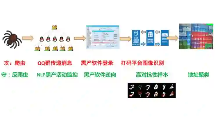 第二步,我们会渗透到大量黑产群里,用我们自己的爬虫爬取信息,比如,会用NLP的技术监控黑产的活动,黑产所用到的工具、技术等。