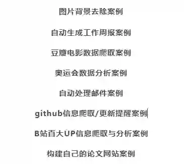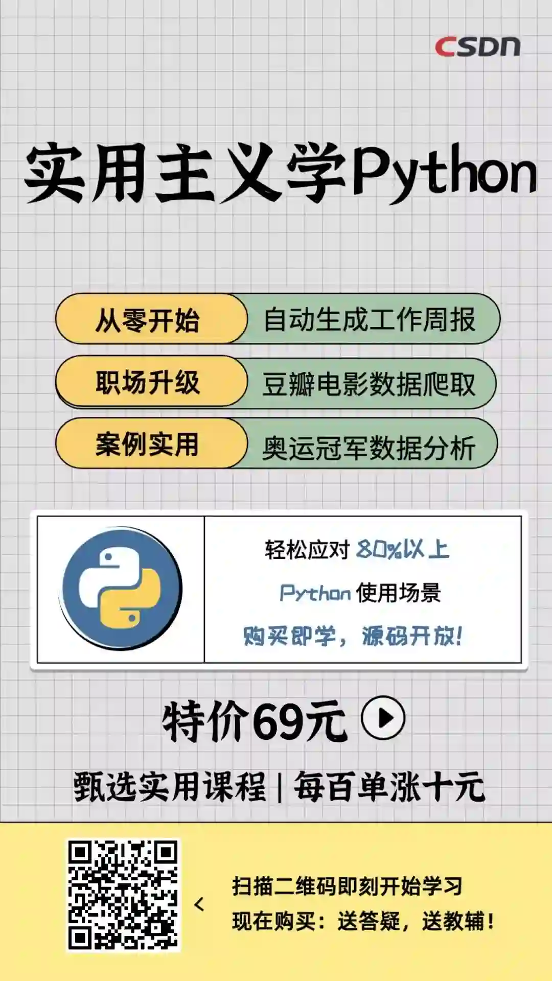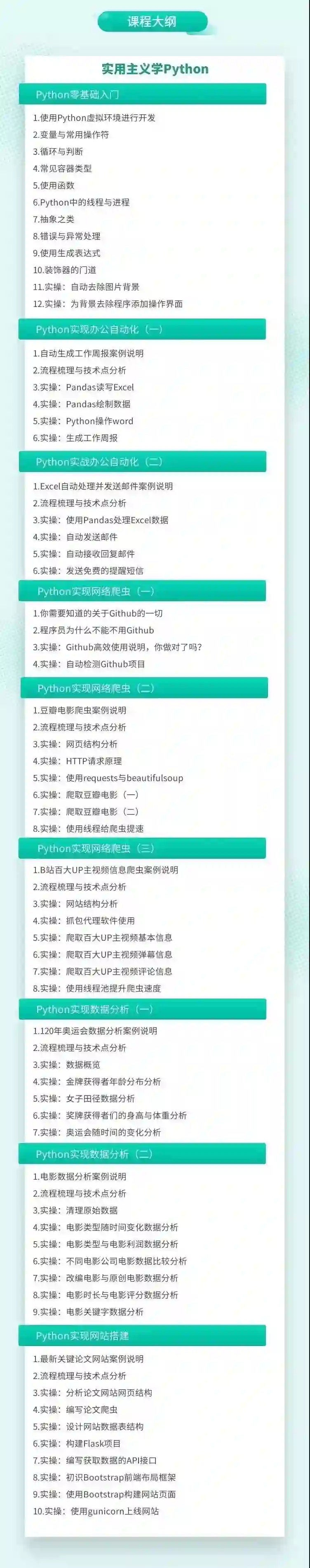 本课程还以深入浅出的方式讲解Python的基本知识,还包括自动化办公、网络爬虫、数据分析三个方面的实战开发,众多实用性极强的案例,小白也容易上手!