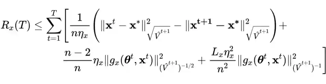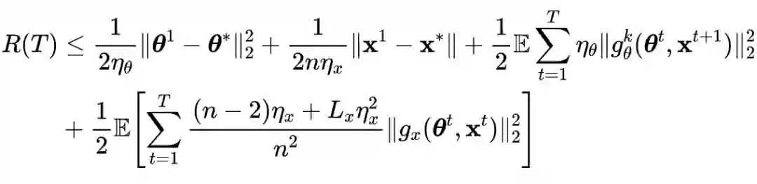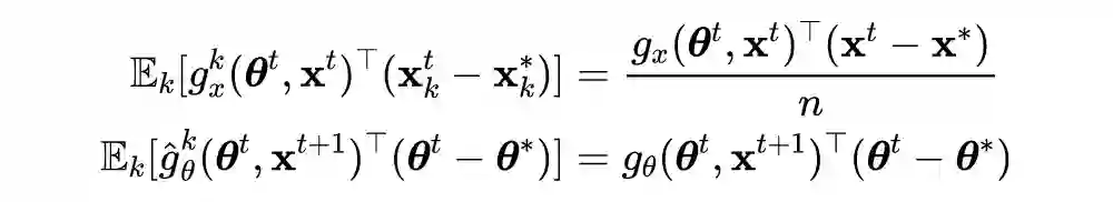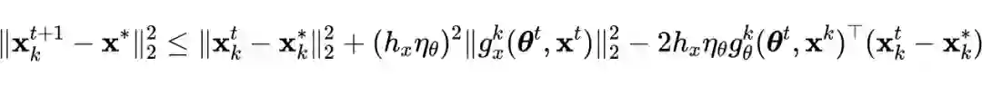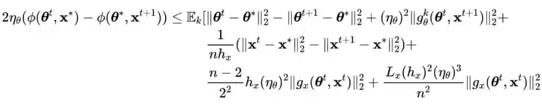 第一个和第三个不等式遵循最优性条件,第二个不等式使用 Jensen 不等式。在证明定理 1 和定理 2 时,有以下几个梯度符号: