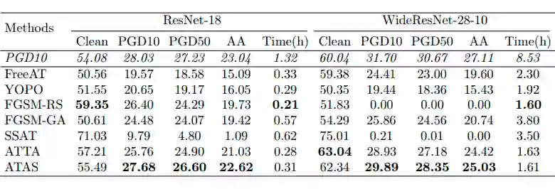 ATAS 学习调整与其梯度范数成反比的训练样本自适应步长。理论分析表明,ATAS 比常用的非自适应算法收敛得更快,在对各种对抗扰动进行评估时,ATAS 始终可以减轻模型的过拟合现象,并且该算法在 CIFAR10、CIFAR100和ImageNet 等数据集上实现更高的模型鲁棒性。