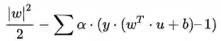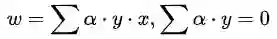 优化理论:最优化拉格朗日L=,分别求出w和b偏导=0的极值条件得: