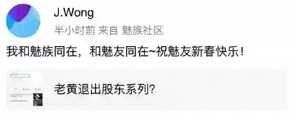 【黄章回应股权变更:我与魅族同在】1月19日消息,先前曾有消息称魅族创始人黄章退出魅族科技股东行列,随后,魅族官方正式回应此事,表示信息出错正沟通更改。19日,魅族科技创始人黄章也现身魅族社区与魅友互动,回应“股权变更”一事,黄章表示,我与魅族同在,与魅友同在。(IT之家)