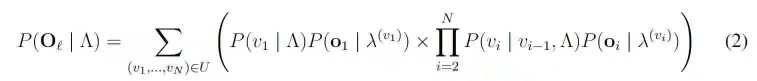 2、形式化定义:(1)第一层的Markov,对于K个状态,每个状态有一个初始概率分布和转移概率矩阵;(2)第二层的HMM,有隐状态的初始概率,转移概率矩阵,以及第一层的K组参数(不需要发射矩阵了)