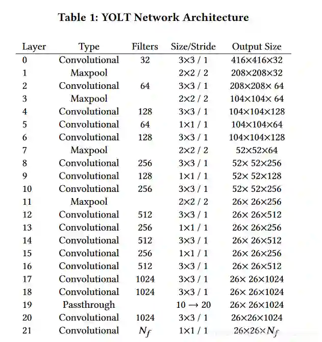 YOLT的网络结构如下面的Table1所示: