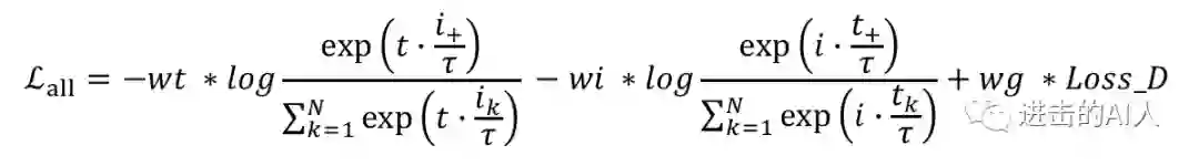 符号和字母都在前几篇介绍过,这里不多做解释了。这里2个模态的 loss 可以根据数据分布的差异以及业务目标的差异,设置不同的权重,以此来优化更好的结果。