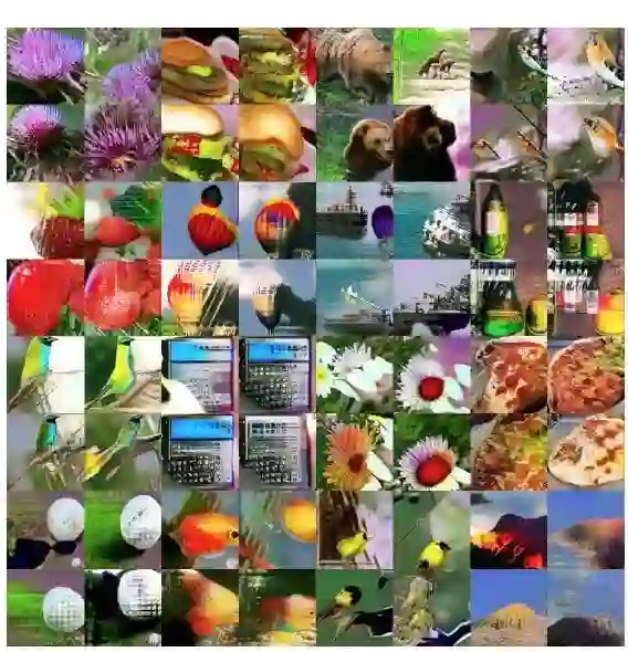 作者训练了1000个 Generator,每个 Generator的结构和之前的实验保持一致,额外添加了2个 upscale 层提升生成图片的维度。 由于内存限制,作者还将隐变量 的维度从 1024 减少到512。为了估计每个类的统计数据,我们对每个类采样100张图像。注意,这种抽样可以在教师网络训练期间进行。