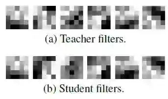 作者对教师和学生得到的卷积核做了可视化,如下图7所示。可以发现,我们的方法学到的学生网络和教师网络具有非常相似的结构,证明了本论文方法的有效性。