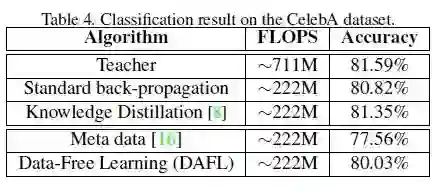 作者又在 CelebA 数据集上进行了实验,使用的教师和学生模型分别为 AlexNet 和 AlexNet-Half。GAN 模型取 DCGAN。