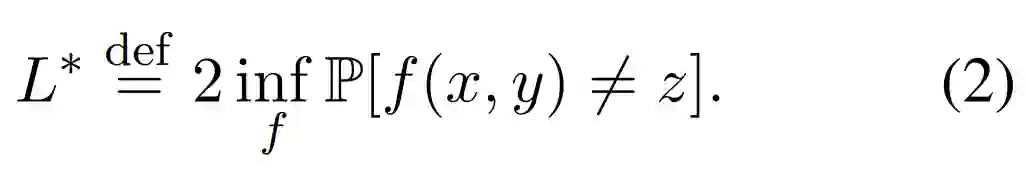 如果我们有任意判别器,它尝试在给定 x 和 y 的情况下判断 z,那么我们可以定义 L*为该判别器最低可能误差率的两倍: