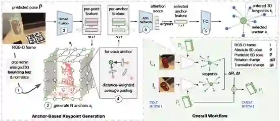 3、这些关键点用于简洁的表示物体,可以有效地估计相邻两帧之间位姿的差异。这种基于关键点的表示方法可以实现鲁棒的实时6D姿态跟踪。