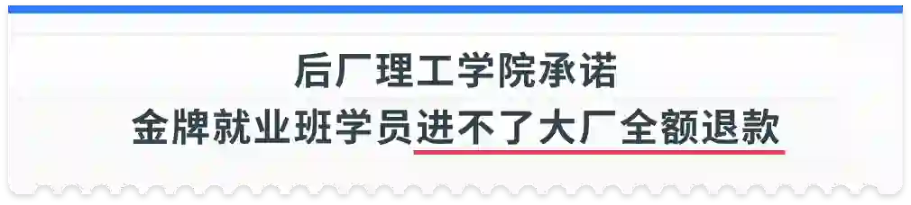 所以后厂理工学院愿意直接承诺,金牌就业班学员进不了大厂全额退款。