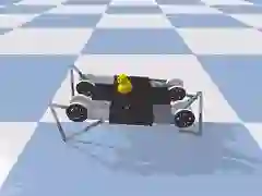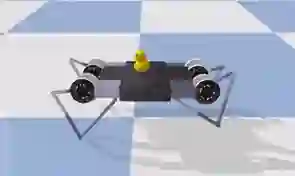 pybullet 中的 Minitaur 模型旨在模仿真实的物理 Minitaur。然而,在完美的模拟环境下训练出来的策略往往不适用于真实世界。它甚至无法泛化到模拟环境内部的小小任务增强。例如,在上图中有一个 Minitaur 被训练用于朝前走(使用 CMA-ES),但是我们看到,当把一只鸭子放在它上面的时候,这个策略并不总是能够保持鸭子不掉而走出房间。