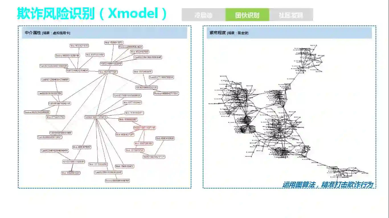 2)群组结构:已知问题能有效快速对抗,对未知欺诈风险也能做到实时预警,避免突发性欺诈风险造成大额损失。