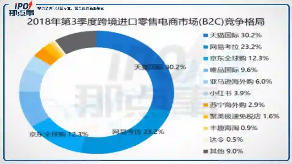 根据Analysys易观第三季度数据,在国内跨境进口零售电商市场中,天猫国际、网易考拉海购、京东全球购分别居前三位,而小红书仅以4.3%的份额位居第六,与排在第五的亚马逊海购7%的份额相比,存在较大差距。