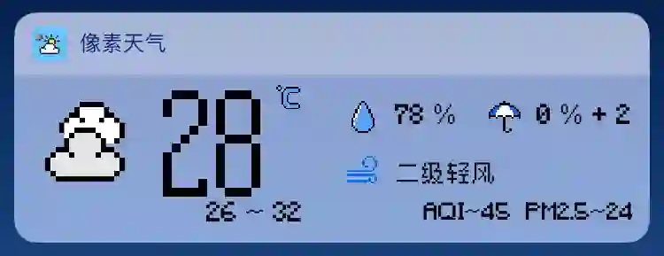 当然,很多时候我们并不愿意专门打开一个应用去查看天气。像素天气也提供了 Widget 及 Apple Watch 应用方便我们快速查看天气状况。与应用中相同,你也可以在 Widget 中查看到非常详细的天气信息。